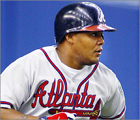 Braves bits: The Elias Sports Bureau said that Julio Franco's stolen base in Saturday night's ninth inning allowed him to break his own record of being the oldest man to steal second base. The 46-year-old first baseman had four stolen bases in 2004. ... Backup catcher Eddie Perez left Saturday night's game because of a weak shoulder. Perez is hoping a few days of rest will allow him to regain some strength. Pete Orr warmed up the pitchers in between innings, when starting catcher Johnny Estrada was unavailable on Sunday.