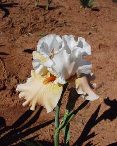 Beard: The fuzzy part of lower petals on bearded iris Falls: The three lower petals Plicata: Speckled, stitched or flecked with another color Self: An even color throughout Signal: The spot of color replacing beard on beardless irises Standards: The three upright petals of the flower Styles: Extend from the throat of the flower |