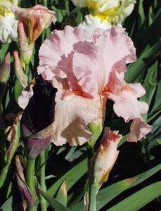 Beard: The fuzzy part of lower petals on bearded iris Falls: The three lower petals Plicata: Speckled, stitched or flecked with another color Self: An even color throughout Signal: The spot of color replacing beard on beardless irises Standards: The three upright petals of the flower Styles: Extend from the throat of the flower |