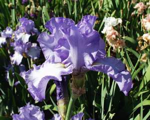 Beard: The fuzzy part of lower petals on bearded iris Falls: The three lower petals Plicata: Speckled, stitched or flecked with another color Self: An even color throughout Signal: The spot of color replacing beard on beardless irises Standards: The three upright petals of the flower Styles: Extend from the throat of the flower |