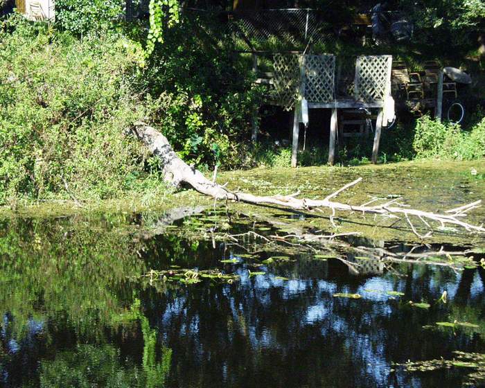 The left-hand post is the one from the picture above. Note the log coming down into the water across the canal between the two posts. |
