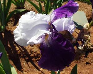 Beard: The fuzzy part of lower petals on bearded iris Falls: The three lower petals Plicata: Speckled, stitched or flecked with another color Self: An even color throughout Signal: The spot of color replacing beard on beardless irises Standards: The three upright petals of the flower Styles: Extend from the throat of the flower |