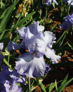 Beard: The fuzzy part of lower petals on bearded iris Falls: The three lower petals Plicata: Speckled, stitched or flecked with another color Self: An even color throughout Signal: The spot of color replacing beard on beardless irises Standards: The three upright petals of the flower Styles: Extend from the throat of the flower |