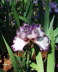 Beard: The fuzzy part of lower petals on bearded iris Falls: The three lower petals Plicata: Speckled, stitched or flecked with another color Self: An even color throughout Signal: The spot of color replacing beard on beardless irises Standards: The three upright petals of the flower Styles: Extend from the throat of the flower |