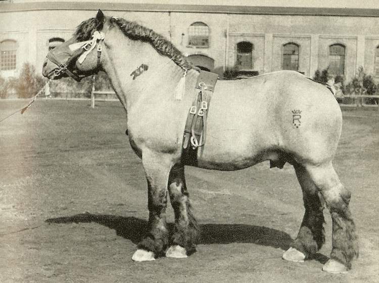 Origin: Belgium (especially Brabançon). Breeding completely in hands of farmers. In Germany (as Rhenish-German heavy horse), particularly in North Rhine-Westphalia, Lowre Saxony, Saxony and Thuringia. Studs: Dillenburg (closed down in 1959) and Kreuz). Indigenous breed, in the past hundred years greatly influenced by an even older breed, the Ardennes. Le Cheval de Trait Belge Association founded in 1866.