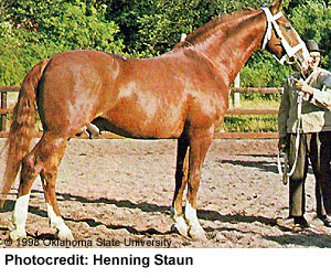 Introduction: If you have any comments or suggestions, please click here. The more recent picture on the above left shows how little the breed has changed from the older type shown on the right and the trademark blaze and stockings are visible as well. I believe, however, that the old Frederiksborg breed as seen in these pictures is disappearing, possibly due to the preference for breeding modern sport horses (the traditional Frederiksborg was a coach horse). However, you may see the section below on Breeding for another possible reason for its disappearance.