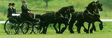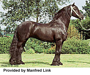 Introduction: In 1662, English horses were described as ". . . (neither) so slovenly as the Flemish . . . nor so earthy as those in the low countries . . ."--an unflattering allusion that might fit the so-called "Flanders mare" type, but which could be scarcely less true of the proud, picturesque Friesian. A breed of national importance in Holland (the Netherlands), the Friesian was in danger of becoming extinct in the early twentieth century. If you have any comments or suggestions, please click here.