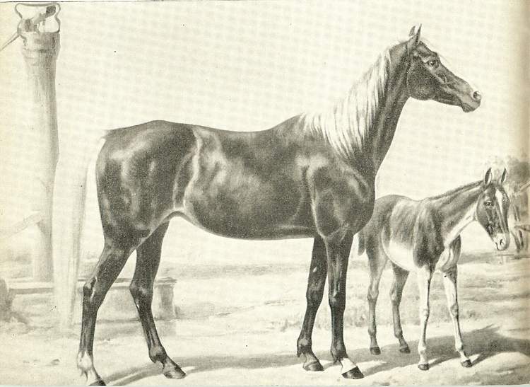 Breeding: Founded by an original Arab stallion from Babolna. But so often has English Thoroughbred been crossed in, that the breed is thought by some to have lost its Arab character.