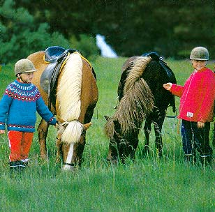 Breeding: Bred from various northern European ponies. Breeding area--Iceland, bred half-wild. According to tradition, the Iceland Pony is supposed to be descended from the Norwegian Fjord Ponies which came to Iceland with the first settlers in about the year 941.