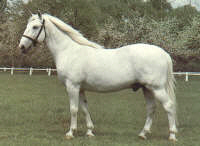 Body: Powerful, erect, crested neck. Short withers, low and rounded off. Back long and straight; beautifully curved, broad and rather long loins. Broad, straight, but short quarters. Tail set high and beautifully carried. Chest broad and deep. Shoulders rather straight, yet well muscled. Ample barrel.