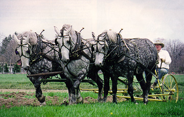 Introduction: In the great days of the drafters, this breed was considered the aristocrat of them all. A farmer putting his Percherons to the plow might reflect that this same breed once pulled the carriages of the Bourbon kings of France. If you have any comments or suggestions, please click here. (Most of the work on this page was done before I began citing the dates of my sources; therefore, I do not know when things were written that say "today." Most of my sources so far have been from the 1970's and 80's.)