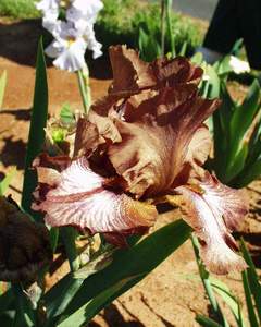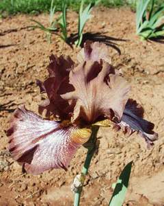 Beard: The fuzzy part of lower petals on bearded iris Falls: The three lower petals Plicata: Speckled, stitched or flecked with another color Self: An even color throughout Signal: The spot of color replacing beard on beardless irises Standards: The three upright petals of the flower Styles: Extend from the throat of the flower |