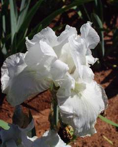 Beard: The fuzzy part of lower petals on bearded iris Falls: The three lower petals Plicata: Speckled, stitched or flecked with another color Self: An even color throughout Signal: The spot of color replacing beard on beardless irises Standards: The three upright petals of the flower Styles: Extend from the throat of the flower |