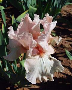 Beard: The fuzzy part of lower petals on bearded iris Falls: The three lower petals Plicata: Speckled, stitched or flecked with another color Self: An even color throughout Signal: The spot of color replacing beard on beardless irises Standards: The three upright petals of the flower Styles: Extend from the throat of the flower |