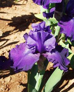 Beard: The fuzzy part of lower petals on bearded iris Falls: The three lower petals Plicata: Speckled, stitched or flecked with another color Self: An even color throughout Signal: The spot of color replacing beard on beardless irises Standards: The three upright petals of the flower Styles: Extend from the throat of the flower |