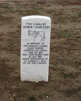 7th Cavalry Horse Cemetery In memory of 7th Cavalry Horses killed during Custer's last stand, June 25, 1876, and later buried here in July 1881, under supervision of Lt. Charles F. Roe of the 2nd Cavalry |