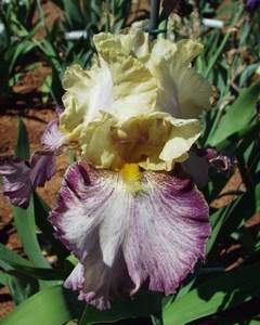 Beard: The fuzzy part of lower petals on bearded iris Falls: The three lower petals Plicata: Speckled, stitched or flecked with another color Self: An even color throughout Signal: The spot of color replacing beard on beardless irises Standards: The three upright petals of the flower Styles: Extend from the throat of the flower |