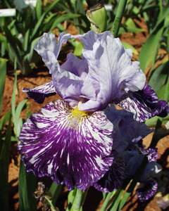 Beard: The fuzzy part of lower petals on bearded iris Falls: The three lower petals Plicata: Speckled, stitched or flecked with another color Self: An even color throughout Signal: The spot of color replacing beard on beardless irises Standards: The three upright petals of the flower Styles: Extend from the throat of the flower |