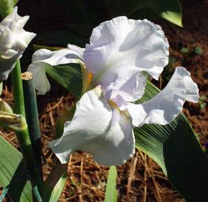 Beard: The fuzzy part of lower petals on bearded iris Falls: The three lower petals Plicata: Speckled, stitched or flecked with another color Self: An even color throughout Signal: The spot of color replacing beard on beardless irises Standards: The three upright petals of the flower Styles: Extend from the throat of the flower |