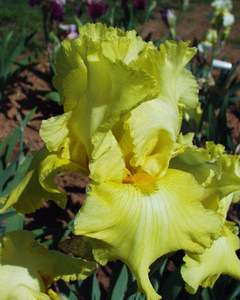 Beard: The fuzzy part of lower petals on bearded iris Falls: The three lower petals Plicata: Speckled, stitched or flecked with another color Self: An even color throughout Signal: The spot of color replacing beard on beardless irises Standards: The three upright petals of the flower Styles: Extend from the throat of the flower |