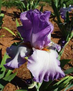 Beard: The fuzzy part of lower petals on bearded iris Falls: The three lower petals Plicata: Speckled, stitched or flecked with another color Self: An even color throughout Signal: The spot of color replacing beard on beardless irises Standards: The three upright petals of the flower Styles: Extend from the throat of the flower |