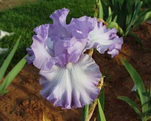 Beard: The fuzzy part of lower petals on bearded iris Falls: The three lower petals Plicata: Speckled, stitched or flecked with another color Self: An even color throughout Signal: The spot of color replacing beard on beardless irises Standards: The three upright petals of the flower Styles: Extend from the throat of the flower |