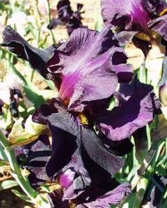 Beard: The fuzzy part of lower petals on bearded iris Falls: The three lower petals Plicata: Speckled, stitched or flecked with another color Self: An even color throughout Signal: The spot of color replacing beard on beardless irises Standards: The three upright petals of the flower Styles: Extend from the throat of the flower |