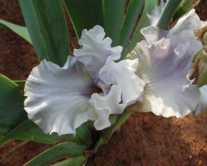 Beard: The fuzzy part of lower petals on bearded iris Falls: The three lower petals Plicata: Speckled, stitched or flecked with another color Self: An even color throughout Signal: The spot of color replacing beard on beardless irises Standards: The three upright petals of the flower Styles: Extend from the throat of the flower |