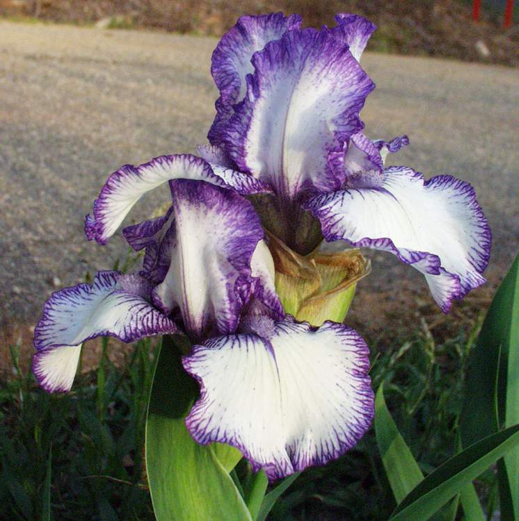 Beard: The fuzzy part of lower petals on bearded iris Falls: The three lower petals Plicata: Speckled, stitched or flecked with another color Self: An even color throughout Signal: The spot of color replacing beard on beardless irises Standards: The three upright petals of the flower Styles: Extend from the throat of the flower |