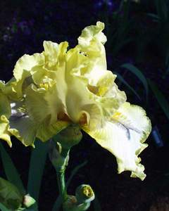 Beard: The fuzzy part of lower petals on bearded iris Falls: The three lower petals Plicata: Speckled, stitched or flecked with another color Self: An even color throughout Signal: The spot of color replacing beard on beardless irises Standards: The three upright petals of the flower Styles: Extend from the throat of the flower |