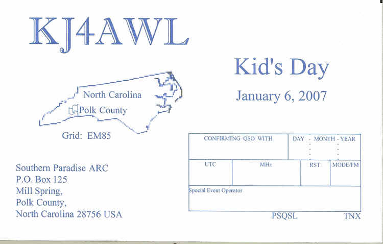 operator has changed. To draw attention, call “CQ Kids Day.”