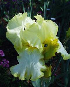 Beard: The fuzzy part of lower petals on bearded iris Falls: The three lower petals Plicata: Speckled, stitched or flecked with another color Self: An even color throughout Signal: The spot of color replacing beard on beardless irises Standards: The three upright petals of the flower Styles: Extend from the throat of the flower |