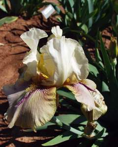 Beard: The fuzzy part of lower petals on bearded iris Falls: The three lower petals Plicata: Speckled, stitched or flecked with another color Self: An even color throughout Signal: The spot of color replacing beard on beardless irises Standards: The three upright petals of the flower Styles: Extend from the throat of the flower |
