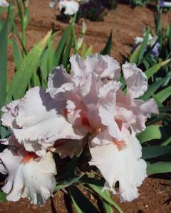 Beard: The fuzzy part of lower petals on bearded iris Falls: The three lower petals Plicata: Speckled, stitched or flecked with another color Self: An even color throughout Signal: The spot of color replacing beard on beardless irises Standards: The three upright petals of the flower Styles: Extend from the throat of the flower |